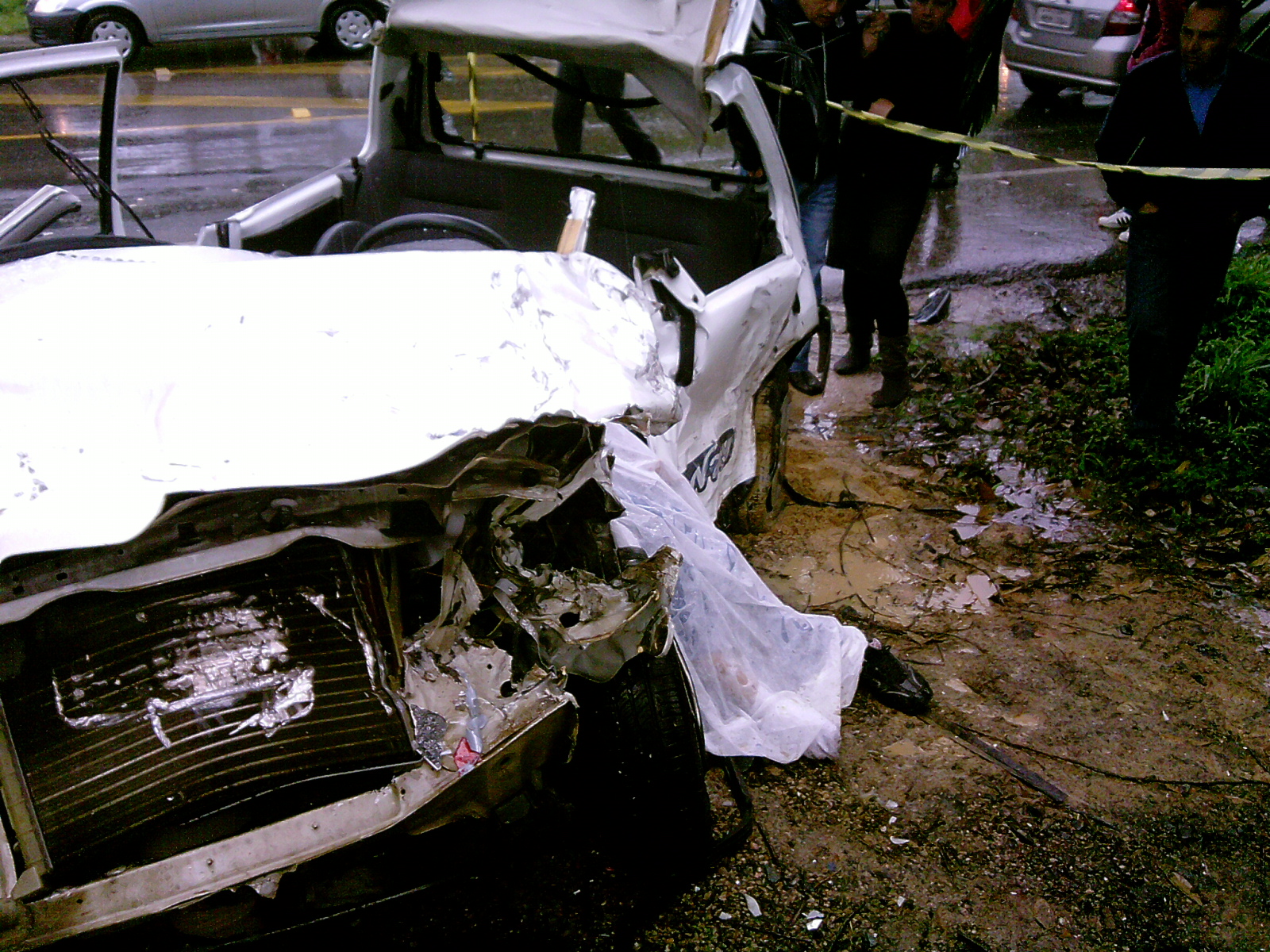 Mulher fica gravemente ferida após carro colidir em poste